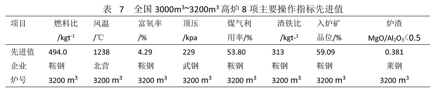 3000m3~3200m3级别高炉主要技术经济指标分析