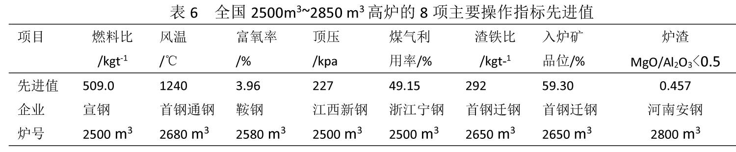 2500m3~2850m3级别高炉主要技术经济指标分析