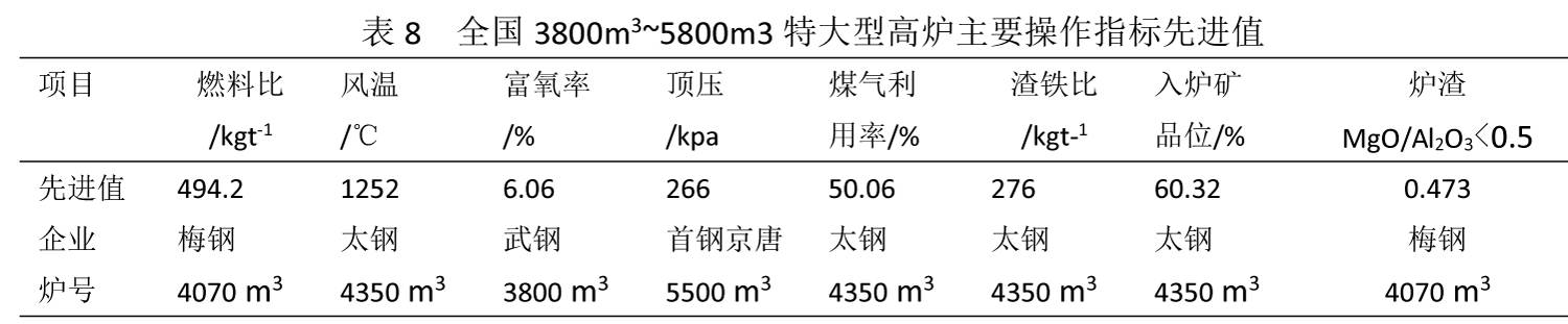 3800m3~5800m3级别高炉主要技术经济指标分析